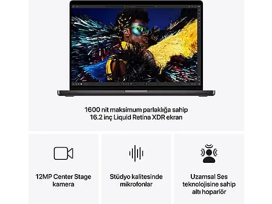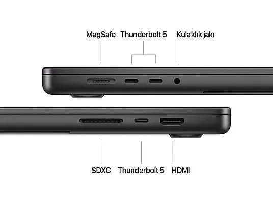 Bağlantılar | MagSafe 3 şarj bağlantı noktası, 35 mm kulaklık jakı, 3 adet Thunderbolt 5 USB-C bağlantı noktası |